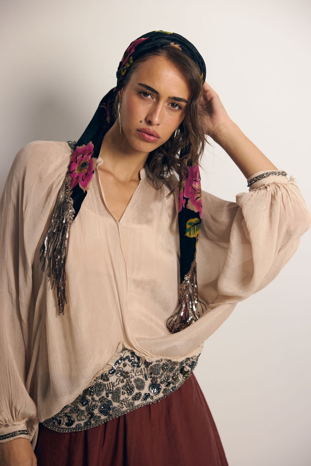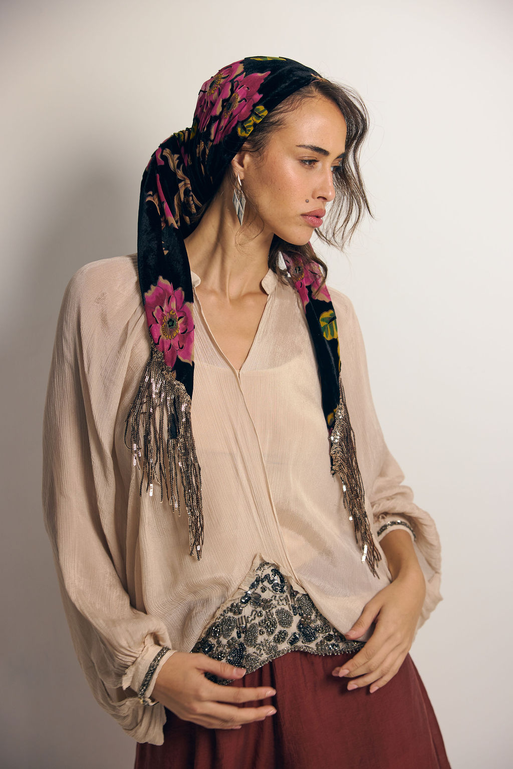 קטיפה צרובה עשירה, פרנז פייטים נדיר שמכניס תנועה ונצנוץ במידה הנכונה….
